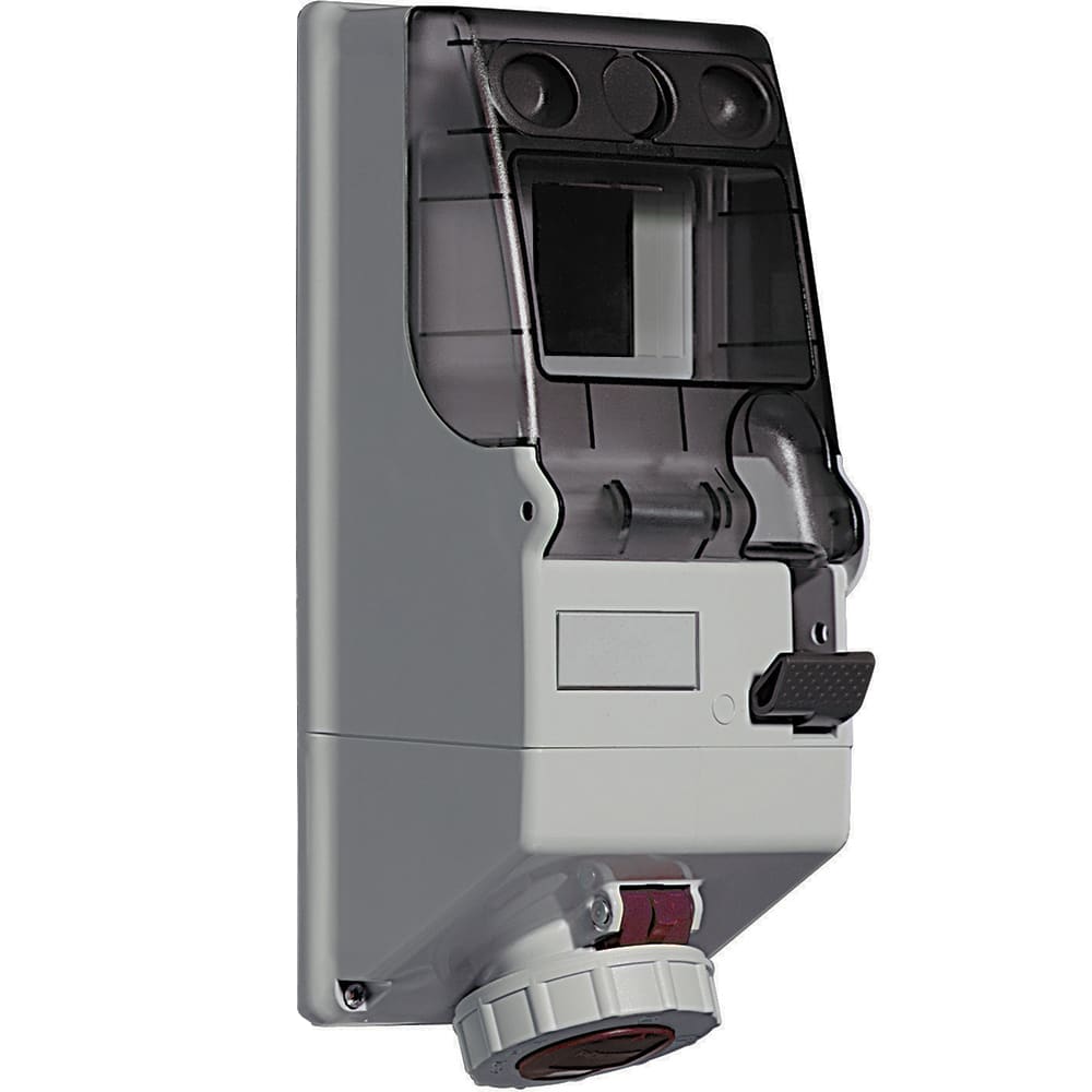 Presa interbloccata standard 3P+T 125x280mm, IP66, IK08, In= 16A, Vn=380÷415Vac, rossa. Predisposta con guida DIN35. Fornita senza pressacavi