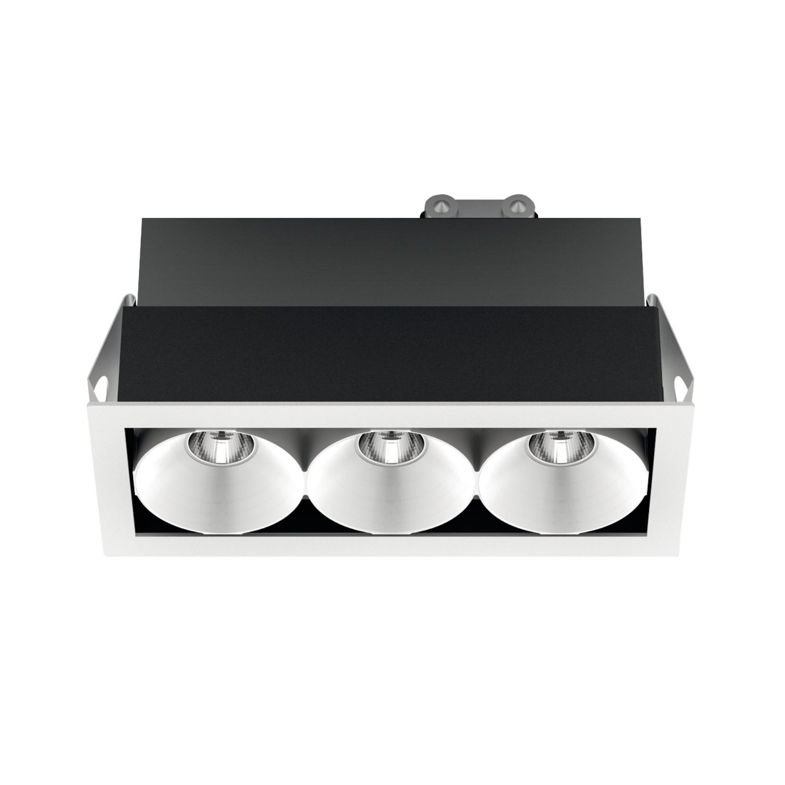 Downlights a singola emissione per applicazione indoor. La sorgente luminosa LED, di colore bianco caldo, con distribuzione luminosa Flood, è composta da 3 LED powerled, con una CCT 3000 K ed un CRI 90; il flusso luminoso della sorgente è di 537 lm, con un'efficienza nominale di 89.5 lm/W.