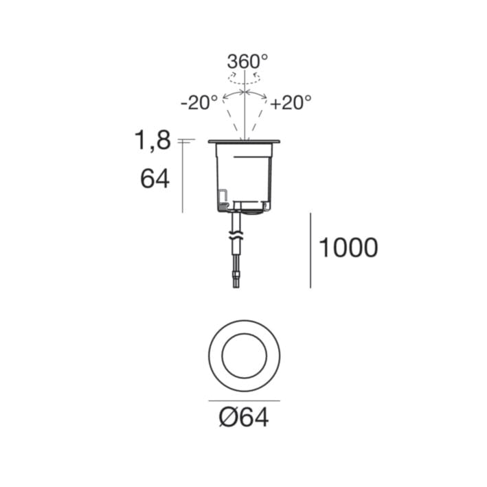 Il corpo dell'apparecchio, realizzato in alluminio pressofuso en ab - 46100, presenta una finitura di colore nero ral 9005 opaco, ottenuta tramite anodizzazione poro aperto + verniciatura a polvere; il diffusore è prodotto in vetro extra chiaro - temprato. Il grado di protezione è IP68; il peso complessivo è di 0.310 kg. Il driver d’alimentazione non è fornito e deve essere ordinato separatamente.