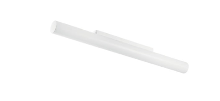 Lampada a parete e plafone a doppia emissione per applicazione indoor. La sorgente luminosa LED, di colore bianco caldo, con distribuzione luminosa General Lighting, è composta da 112 LED topled, con una CCT 3000 K ed un CRI 80; il flusso luminoso della sorgente è di 4764 lm, con un'efficienza nominale di 148.9 lm/W.
