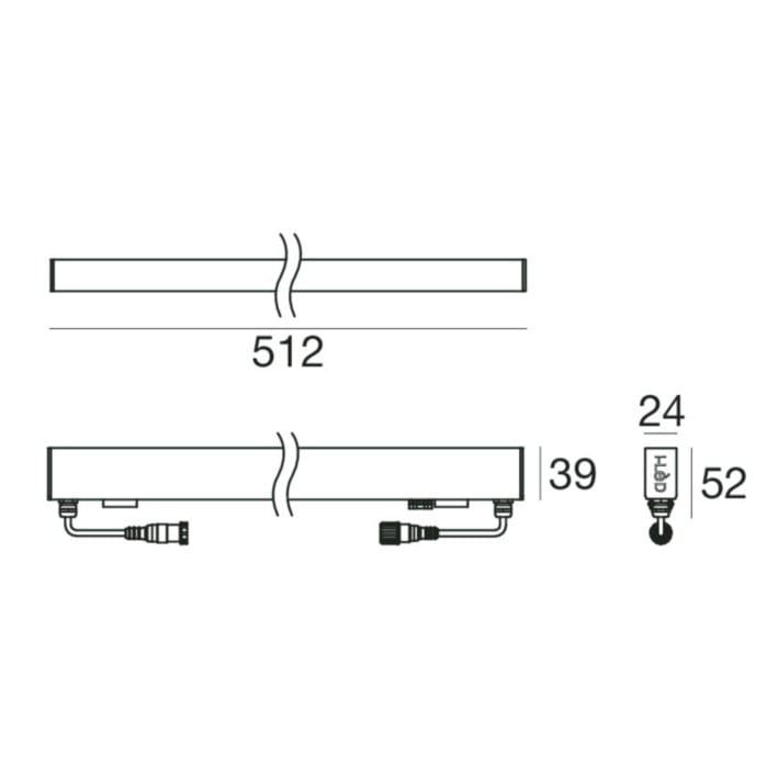 Elementi lineari a singola emissione per applicazione outdoor. La sorgente luminosa LED, di colore bianco caldo, con distribuzione luminosa Asymmetric Wallwasher, è composta da 120 LED topled, con una CCT 3000 K ed un CRI 80; il flusso luminoso della sorgente è di 720 lm, con un'efficienza nominale di 120.0 lm/W. Il corpo dell'apparecchio, realizzato in policarbonato uv resistente, presenta una finitura di colore trasparente; il diffusore è prodotto in policarbonato uv resistente. Il grado di protezioneè IP67; il peso complessivo è di 0.45 kg. La potenza assorbita dall'apparecchio è di 6 W.