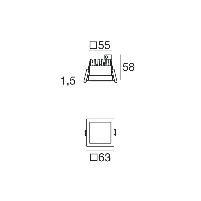 L'apparecchio presenta una classe di isolamento I ed è installabile a soffitto, con foro quadrato con misura 58 x 58 mm (nel cartongesso).