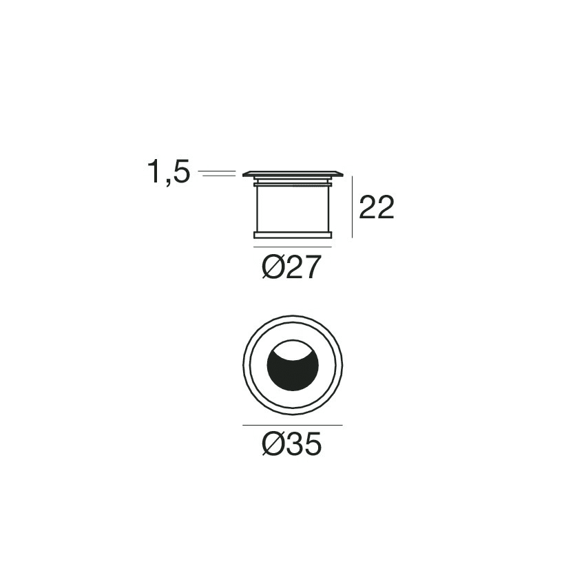 L'apparecchio presenta una classe di isolamento III ed è installabile a pavimento, con foro tondo di diametro 29 mm (nel cartongesso).