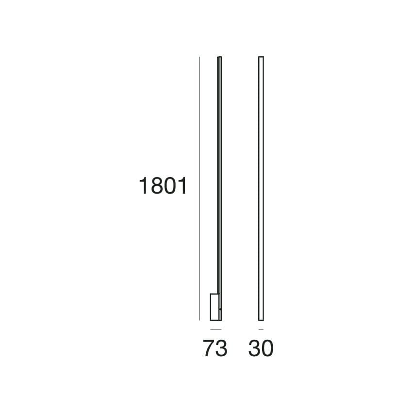 Lampada a parete a singola emissione per applicazione indoor. La sorgente luminosa LED, di colore bianco caldo, con distribuzione luminosa Asymmetric Wallwasher, è composta da 80 LED topled, con una CCT 3000 K ed un CRI 90; il flusso luminoso della sorgente è di 2914 lm, con un'efficienza nominale di 137.1 lm/W ed una durata operativa (L80) di 80000 ore.Il corpo dell'apparecchio, realizzato in alluminio, presenta una finitura di colore bianco ral 9003 goffrato, ottenuta tramite verniciatura; il diffusore è prodotto in pmma, con una lavorazione di sabbiatura. Il grado di protezione è IP20; il peso complessivo è di 2.565 kg. Il driver di alimentazione è incluso nella confezione. La potenza assorbita dall'apparecchio è di 25 W, e viene fornita da un driver specifico con range operativo 220V - 240V / 50Hz - 60Hz. Il cavo per l'alimentazione è incluso e presenta. L'apparecchio presenta una classe di isolamento II ed è installabile a parete.