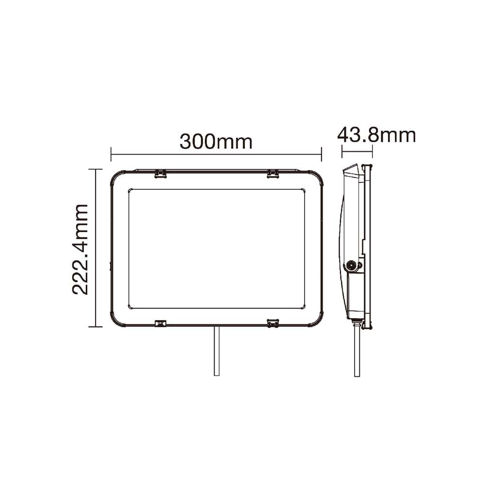 Proiettore simmetrico, 75 W, IK07, IP65, 8600 lm, 115 lm/w, Dip Switch 3 CCT 3000 K/3500/4000 K (selettore sul corpo lampada), On/Off, 300*222,4*43,8 mm, 220-240 V, BA 110? ,SDCM5,UGR31,-20?C-40?C, 50.000H(L70B50),5 anni di garanzia, LED Samsung SMD 2835,Classe I,Grigio scuro (RAL7024 opaco),Alloggiamento in alluminio pressofuso-prismatico diffusore in vetro, senza sfarfallio, cavo 500 mm senza spina