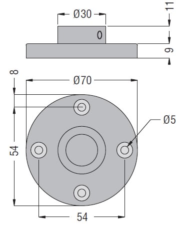 Base di fissaggio su supporto orizzontale metallico, colore nero