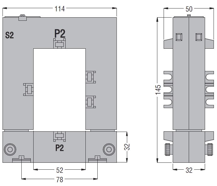 Trasformatore di corrente apribile, per barre da 50x60 mm. I trasformatori di corrente serie DM vengono montati in un sistema elettrico per ridurre la corrente di linea ad un valore secondario di 5A compatibile con gli ingressi amperometrici dei multimetri digitali o dei relè di protezione. Sono trasformatori di corrente senza avvolgimento primario e vengono normalmente utilizzati per alti valori di corrente primaria.