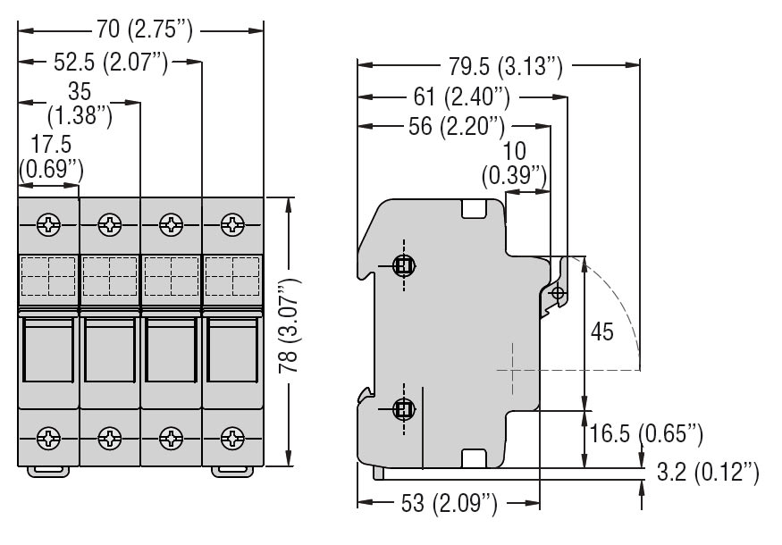 BASE PORTAFUSIBILI, PER FUSIBILI 10X38MM. CORRENTE NOMINALE 32A (690VAC), 1P. CON INDICATORE LUMINOSO. 1 MODULO