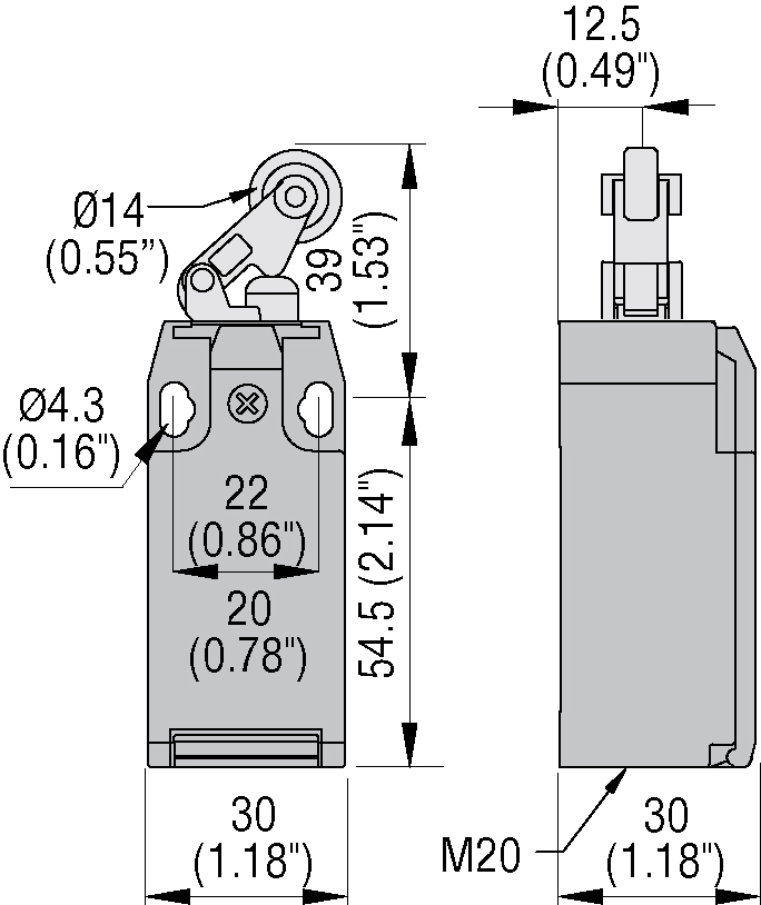 FINECORSA SERIE K, A LEVA CON ROTELLA CENTRALE, 1 INGRESSO DAL BASSO PER CAVO. DIMENSIONI SECONDO EN 50047, CUSTODIA PLASTICA, CONTATTI 2NA LENTO. ROTELLA IN PLASTICA