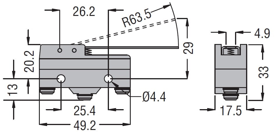 LOVATO - LOVKSL1S MICRO SWITCH A LEVA (63MM) TERM. SALDARE - KSL1S