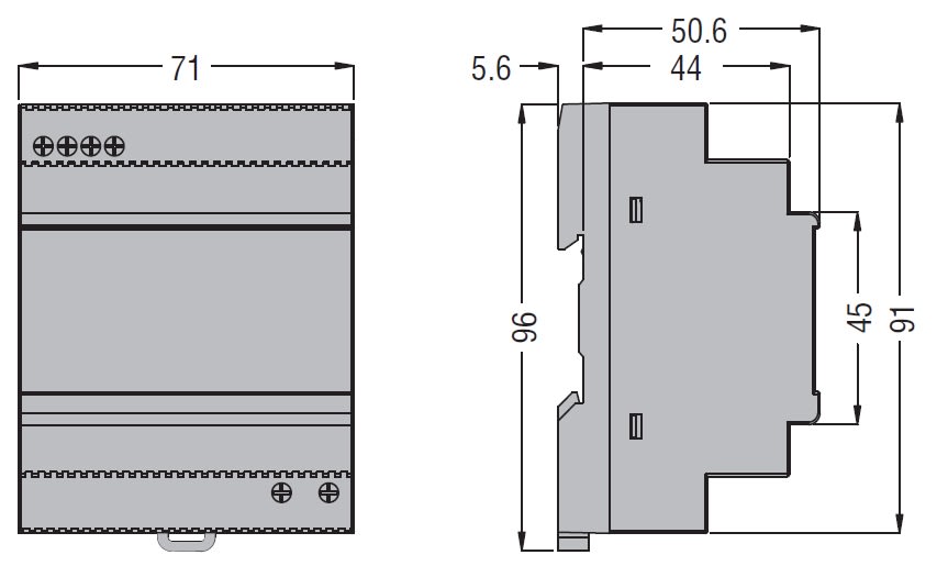Alimentatore switching modulare, destinato al mondo dell'automazione industriale e civile. Dimensioni compatibili con centralini di tipo modulare, contenitore in materiale plastico che li rende utilizzabili nelle installazioni in building automation oltre che nelle applicazioni di automazione industriale. Protezioni contro cortocircuito, sovraccarico, picchi di tensione in ingresso. Segnalazioni tramite LED per tensione troppo bassa e presenza alimentazione.