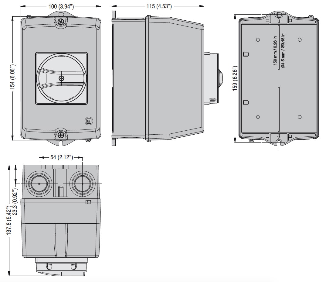 CONTENITORE DA PARETE IP65 PER SM1R... CON ATTUATORE ROTATIVO GIALLO/ROSSO. LARGHEZZA 100MM.