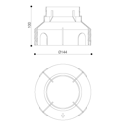 Accessorio: Controcassa a murare per apparecchi serie Lira 95. Caratteristiche: Corpo in tecnopolimero. Caratteristiche di installazione: Chiusura inferiore e superiore per agevolare la cementazione. Caratteristiche dimensionali: Controcassa cilindrica di dimensioni Ø144mm con profondità 100mm.