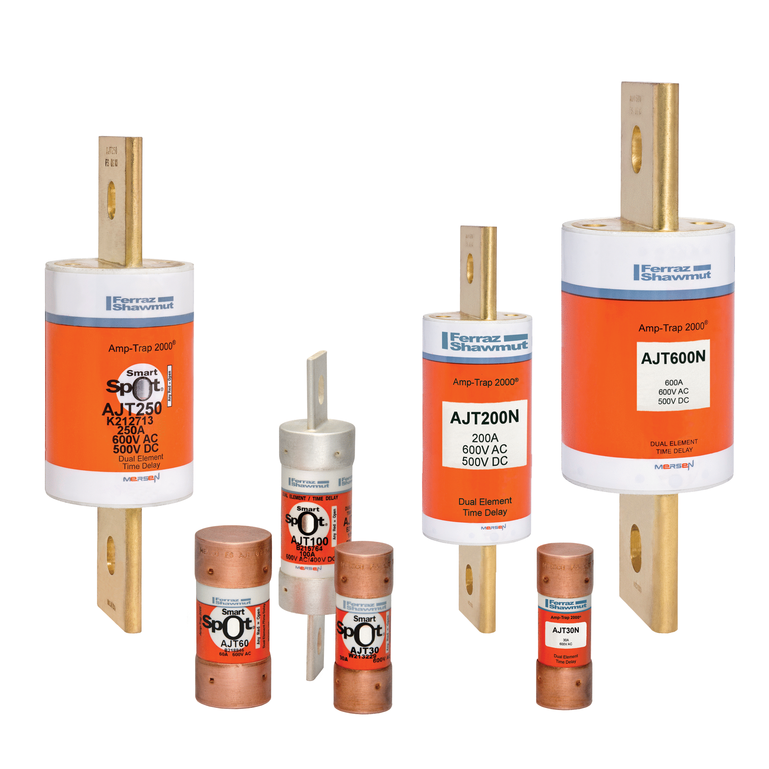 I fusibili Amp-Trap 2000? AJT sono disponibili nelle versioni senza indicatore e con indicatore di apertura fusibile SmartSpot. Grazie ai materiali tecnologicamente avanzati, il fusibile AJT assicura la protezione IEC Tipo 2 senza danno su reti elettriche, alimentatori e circuiti derivati, per tutti i tipi di carichi, pur richiedendo solo la meta dello spazio normalmente necessario per i fusibili Classe RK da 600VAC. Le caratteristiche di temporizzazione dei fusibili AJT sono ideali per la gestione dellecorrenti di spunto di motori e trasformatori, insieme alleccellente potere di limitazione di corrente.