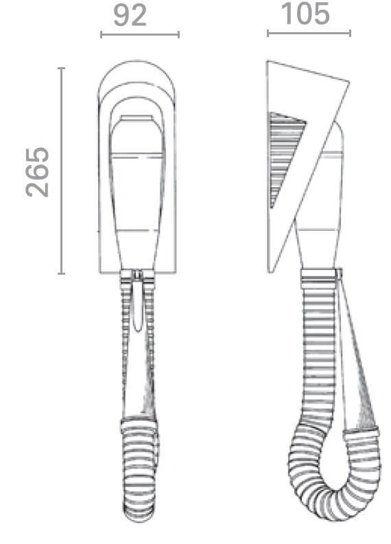 Asciugacapelli da parete a tubo rigido, a 1 velocità. Il design compatto lo rende facilmente adattabile a piccoli ambienti e spazi ridotti sia in casa che in bagni di alberghi e comunità. Potenza: 700 W.STRUTTURALa struttura è in PC+ABS e ABS.CALORE CONTROLLATO, SALUTE DEL CAPELLOHa una buona potenza ed una velocità; l’aria esce ad una temperatura ottimale che non danneggia i capelli ed evita sprechi di energia.SICUREZZATutte le parti elettriche sono fissate alla parete, protette e con doppioisolamento in classe II. Il sistema di accensione e spegnimento automatico BREVETTO MO-EL si attiva semplicemente tirando e rilasciando l’impugnatura. Eliminando qualsiasi possibilità di contatto, inserimento e disinserimento di spine, gli asciugacapellisono assolutamente sicuri anche per i bambini.COLLOCAZIONEGrande facilità di installazione: due viti con tasselli assicurano la perfetta tenuta in ogni condizione.Il meccanismo di accensione, coperto da brevetto MO-EL, consente di ottimizzare il consumo energetico, evitando lo spreco di energia elettrica.Funzione:I prodotti per il Bagno MO-El, realizzati in italia garantiscono la protezione IPX4 contro gli spruzzi e la sicurezza dei test IMQ e UL e possono essere installati in bagno in conformità alle normative vigenti in materia di sicurezza. Elephon è la linea di asciugacapelli MO-EL sicura e a risparmio energetico. Tutte le componenti elettriche sono fissate al muro e custodite nel corpo in ABS protette contro gli spruzzi d'acqua IPX4 e con doppio isolamento in classe II. Il sistema di accensione automatico consente di controllare gli sprechi, si accende quando viene preso in mano il tubo per essere utilizzato e si spegne in modo automatico ogni volta che viene lasciato.Raccomandato per:Il design compatto lo rende facilmente adattabile a piccoli ambienti e spazi ridotti sia in casa che in bagni di alberghi e comunità.