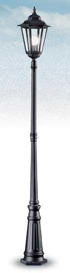 Pressofusione di alluminio. Diffusore: Glass Satinato, Trasparente (versione standard). Specifiche elettriche: 23W E27, 100W E27.