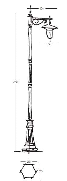 Pressofusione di alluminio. Diffusore: Policarbonato Trasparente, Opale (versione standard). Specifiche elettriche: 23W E27, 60W E27.