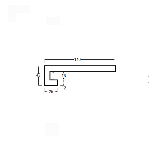 Profilo prefinito in gesso, per installazione a parete, soffitto o come zoccolino, effetto mono-emissione. Elemento completo di una barra in alluminio per applicare una striscia LED.