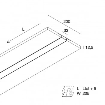 L-33: Profilo lineare per Strip LED tagliabile in opera, per realizzare linee di luce incassate nel cartongesso. Corpo in cartongesso di spessore 12,5 mm da lastra HYDRO (a ridotto assorbimento di acqua, utilizzabile in ambienti con umidit? relativa costante dell?aria ?70%). Profilo dissipante in lega di alluminio anodizzato naturale e schermo di protezione in PMMA opale inclusi. Strip LED e alimentatore elettronico 24Vdc remoto da ordinare a parte. Non esporre a intemperie o luce solare diretta e non inserire in materiale isolante.