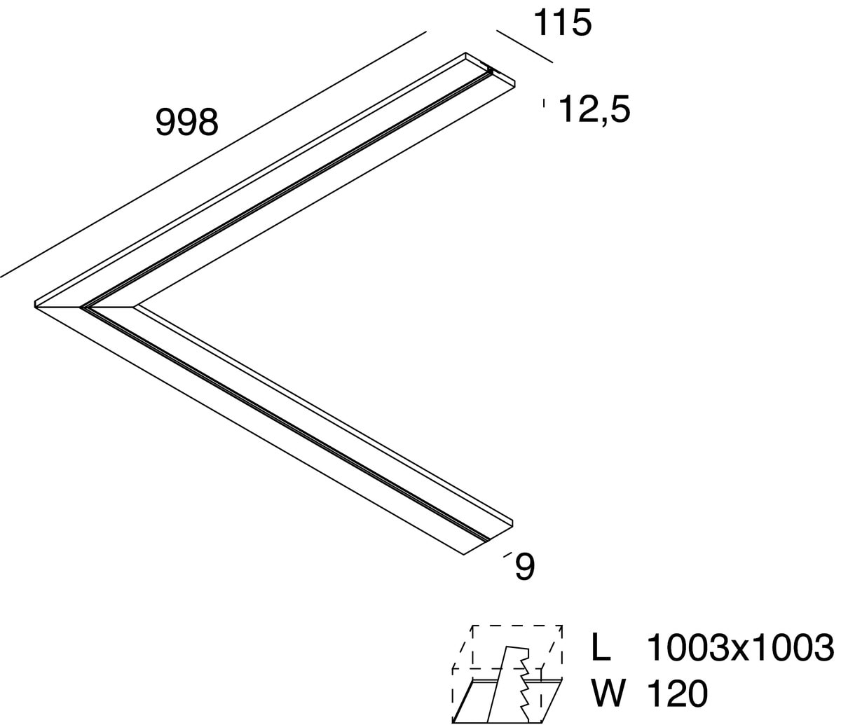 L-09: PROFILO ANGOLARE 90? per Strip LED tagliabile in opera, per realizzare linee di luce incassate nel cartongesso. Corpo in cartongesso di spessore 12,5 mm da lastra HYDRO (a ridotto assorbimento di acqua, utilizzabile in ambienti con umidit? relativacostante dell?aria ?70%). Profilo dissipante in lega di alluminio anodizzato naturale e schermo di protezione in PMMA opale inclusi. Strip LED e alimentatore elettronico 24Vdc remoto da ordinare a parte. Non esporre a intemperie o luce solare diretta e non inserire in materiale isolante.