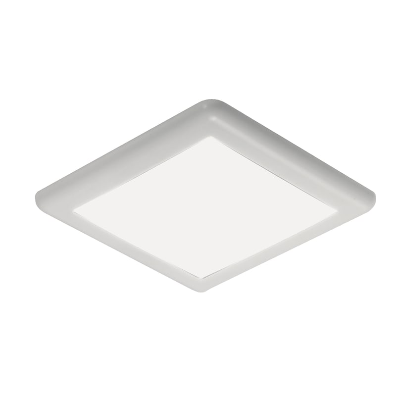 Apparecchio LED per installazione a plafone o ad incasso in battuta in controsoffitto. Temperatura di colore delle sorgenti selezionabile con selettore sul retro dell?apparecchio in 3000K, 4000K o 5400K, potenza totale settabile tra tre disponibili. Corpo in policarbonato e schermo diffusore in polistirene opale. Staffa di installazione in acciaio. Molle in acciaio armonico per fissaggio su controsoffitto di spessore fino a 15 mm, che permettono la regolazione in funzione della dimensione del foro da incasso disponibile. Alimentazione elettronica inclusa, integrata nel corpo dell?apparecchio.