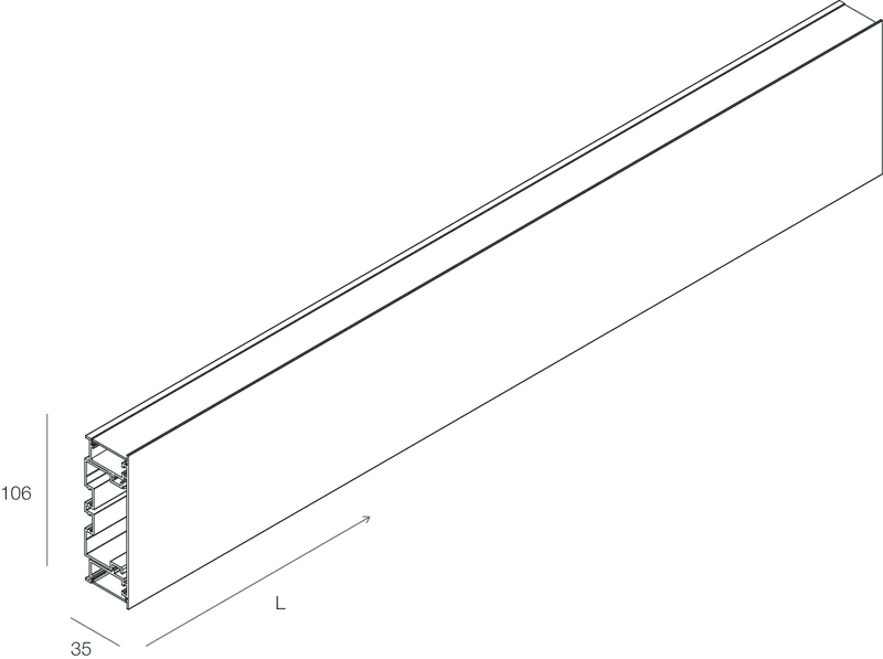 RECTA STRIP LED / Sistema lineare per strip LED a luce diretta/indiretta per installazione a parete. Profilo tagliabile in opera e testate in lega di alluminio verniciata, schermi diffusori in policarbonato opale. Schermi diffusori e kit di giunzione inclusi. Testate terminali, strip LED e alimentatore elettronico da ordinare a parte.