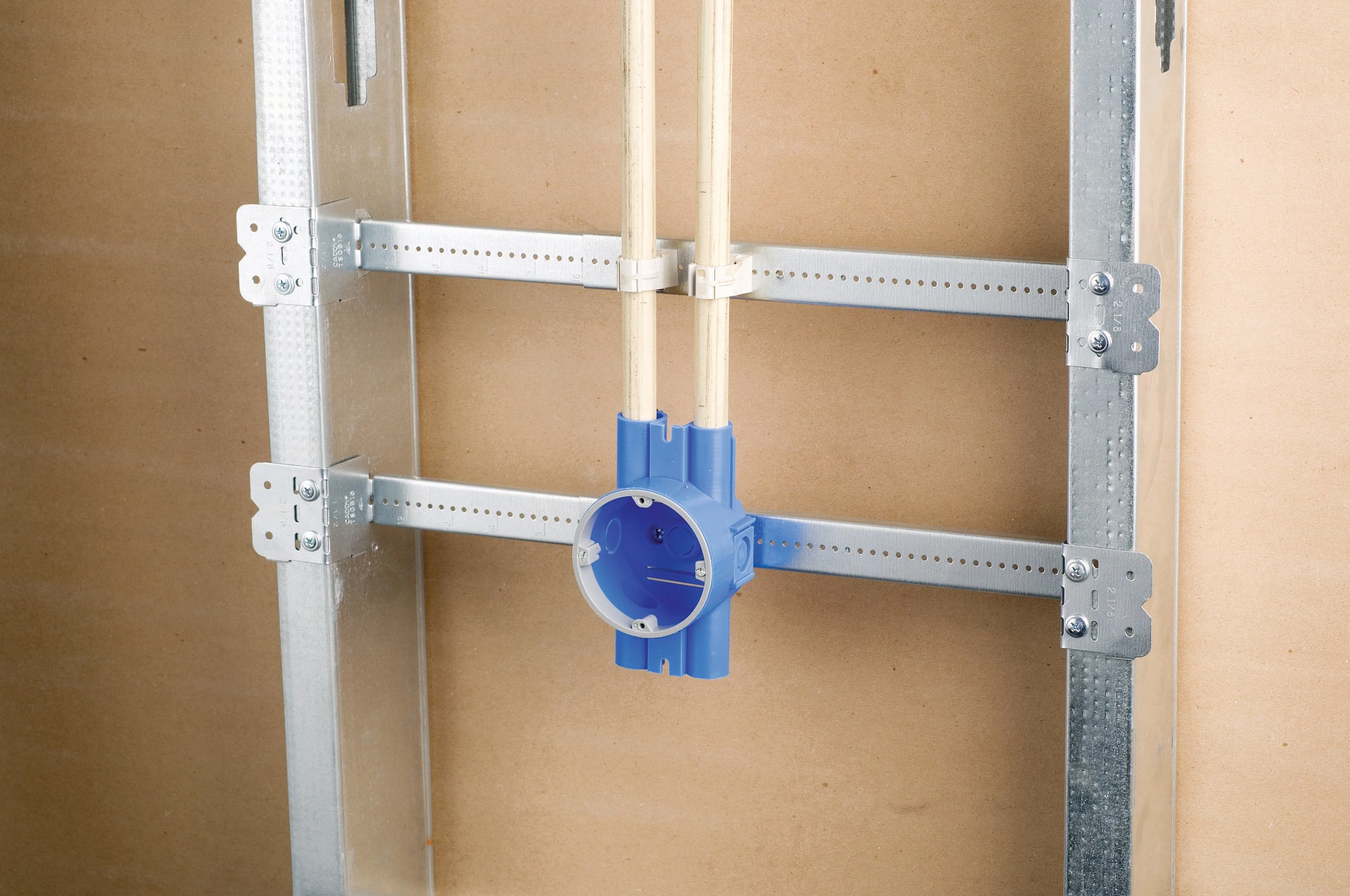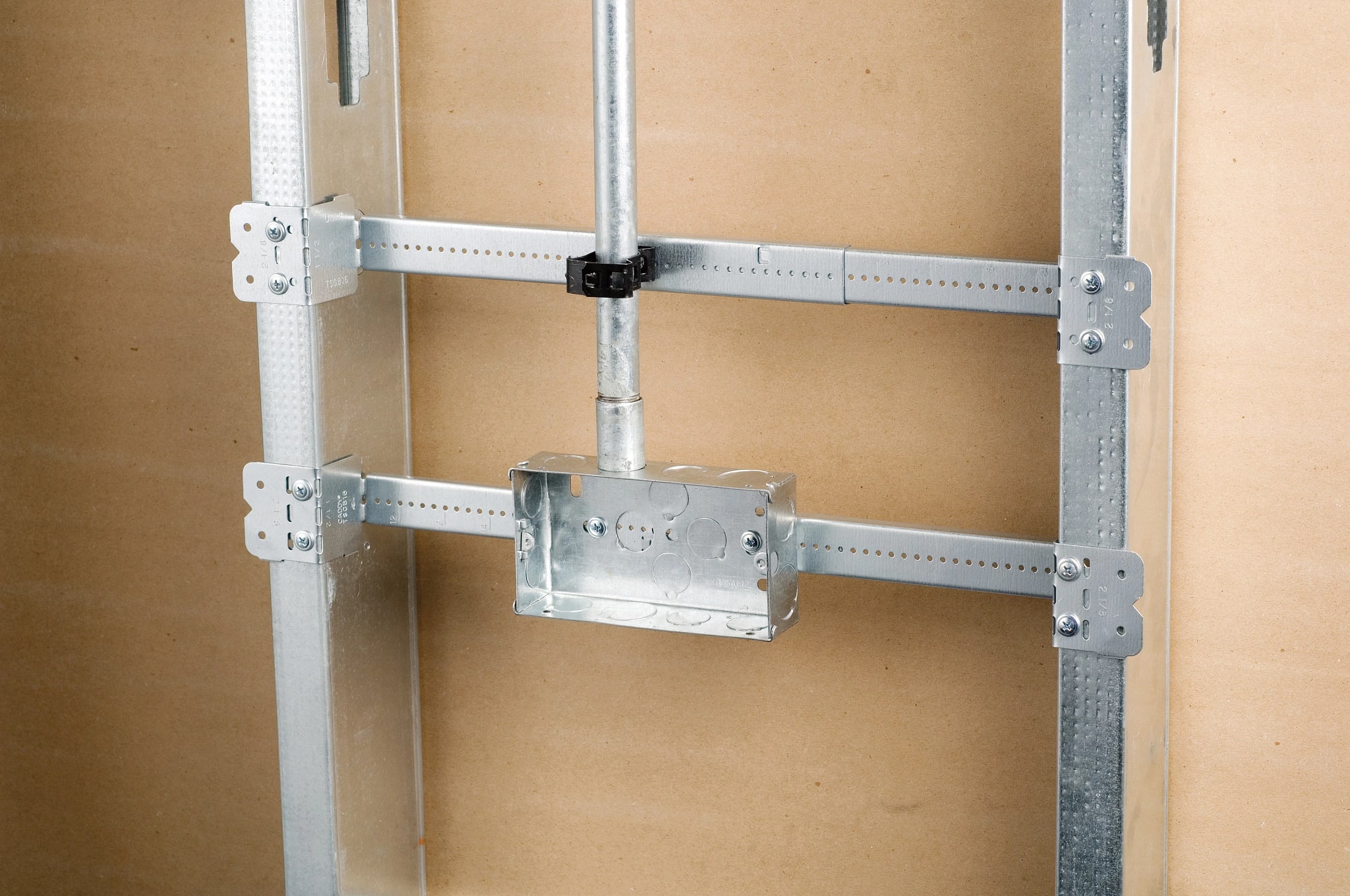La staffa telescopica per avvitatore per scatola accelera il fissaggio preciso della scatola o del conduit tra montanti. Può fissare più scatole o condotti. Regolabile 15 3/4"-25"(400 mm - 635mm) per spaziatura dei montanti non standard.