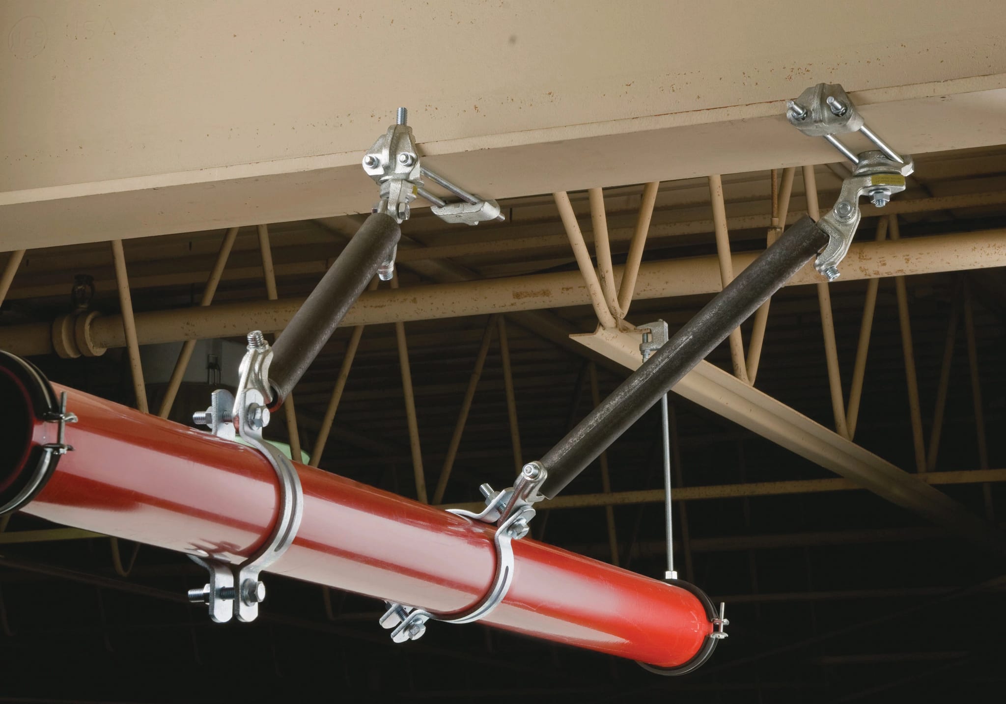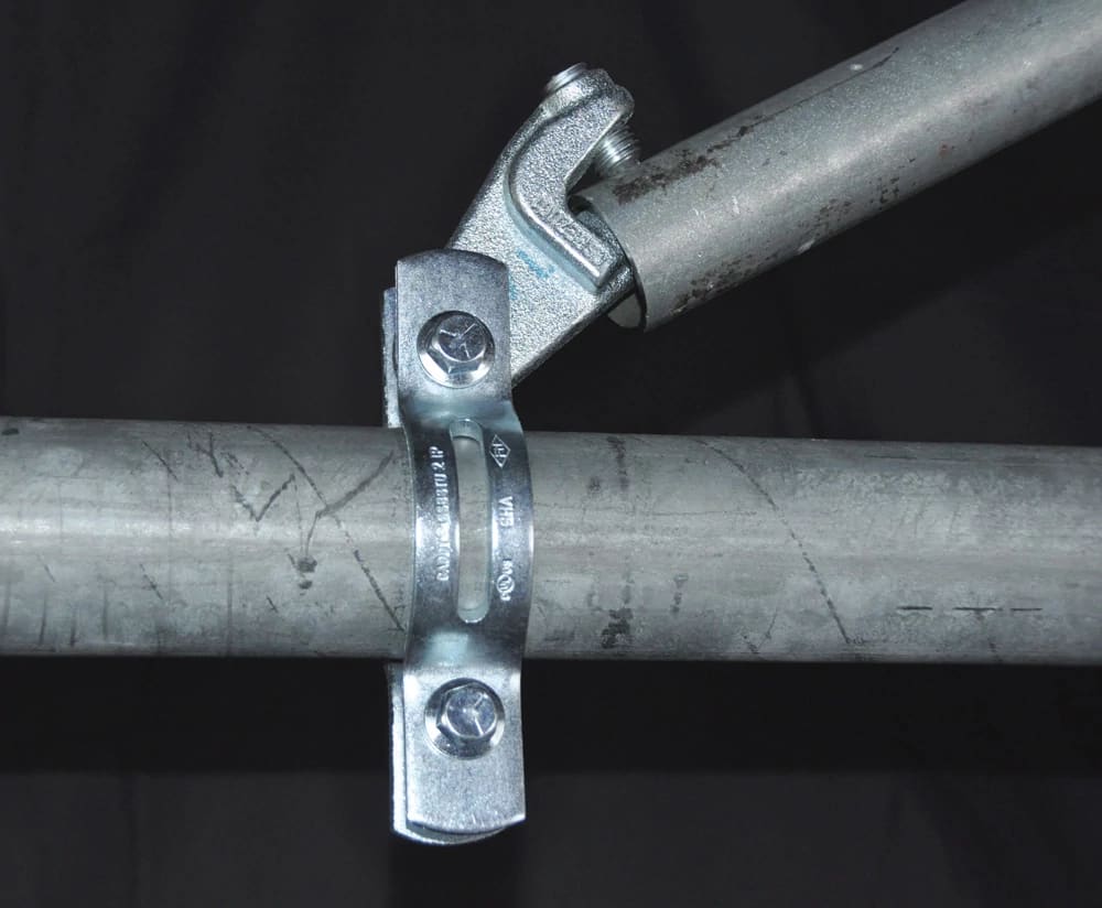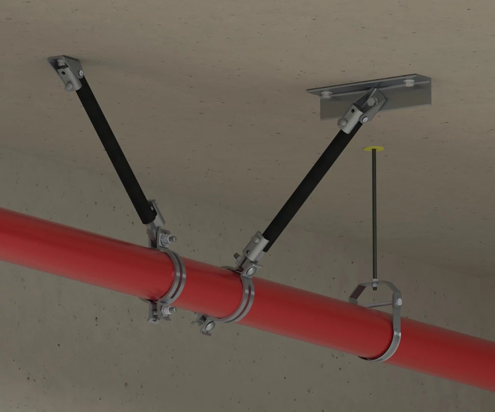 Rinforzo laterale antisismico utilizzato sia per il rinforzo laterale che longitudinale di tubi singoli.Facile da installare, funziona con tubi con rinforzo da 1"a2",per tubi da 8"(200 mm).Bullone a rottura programmata per facile ispezione.