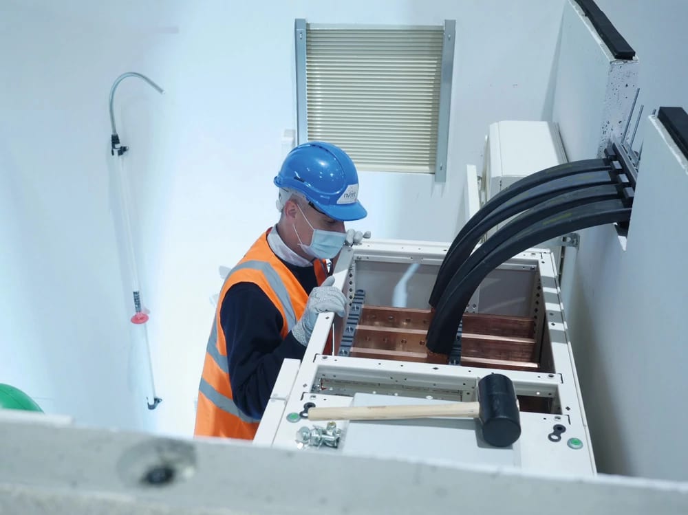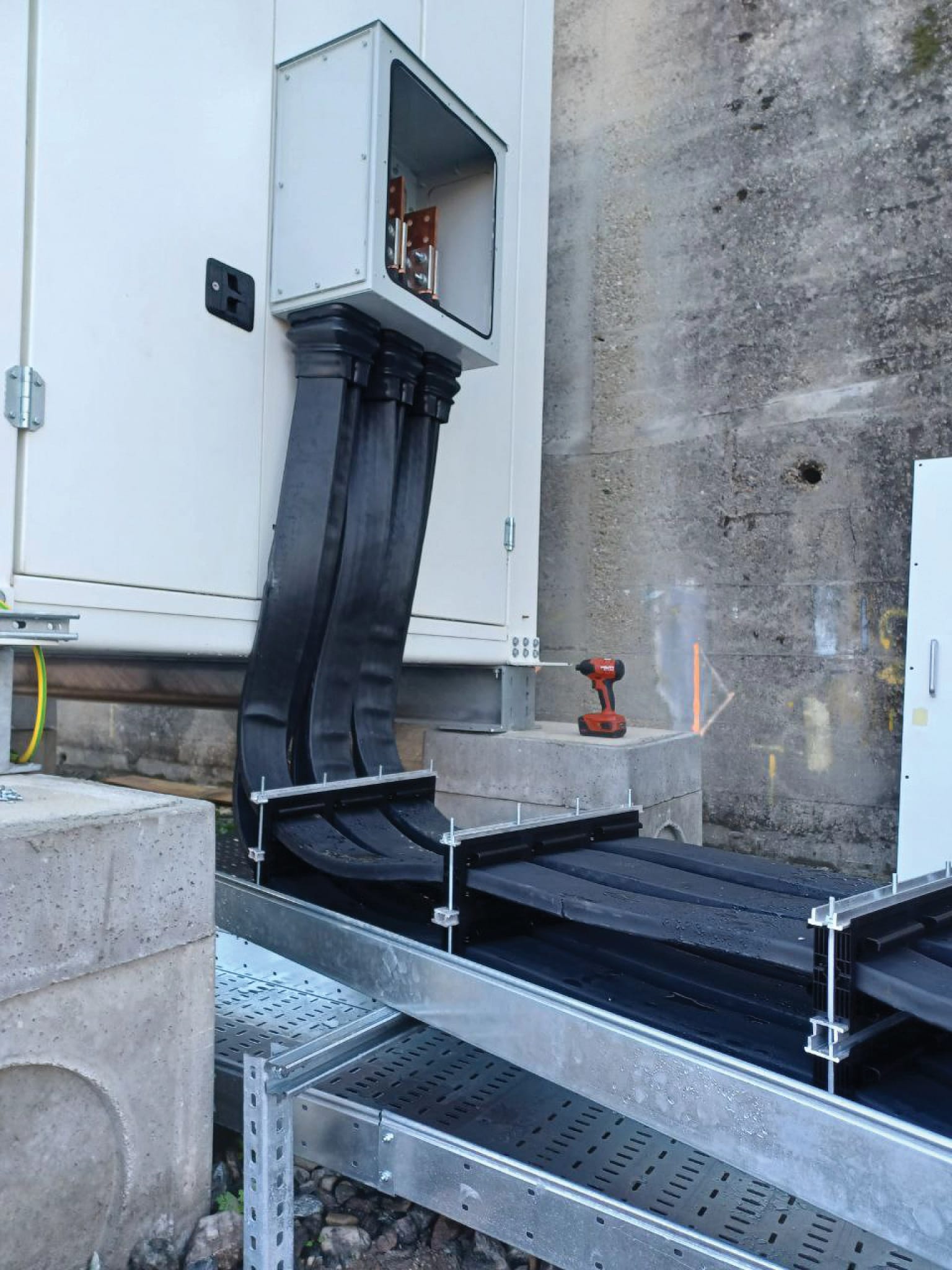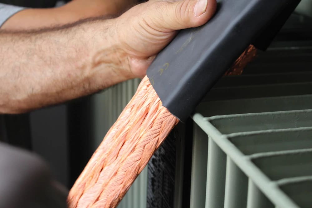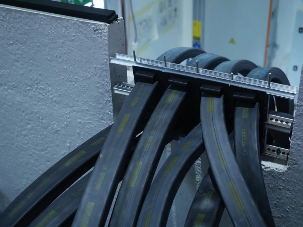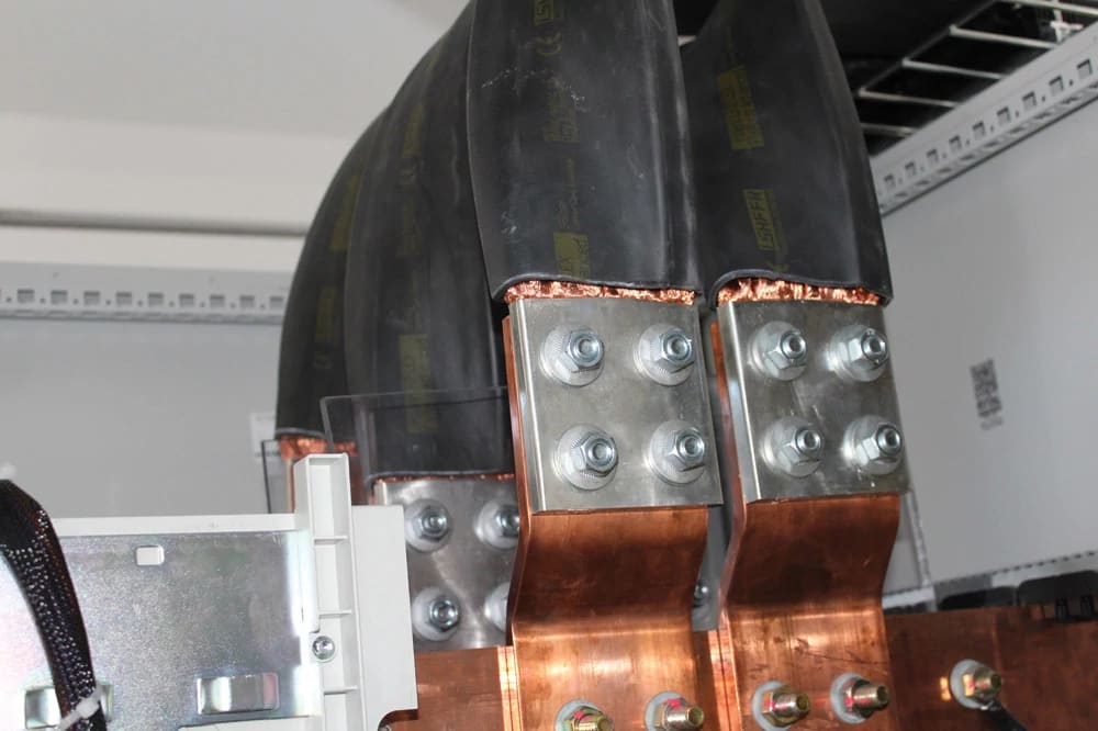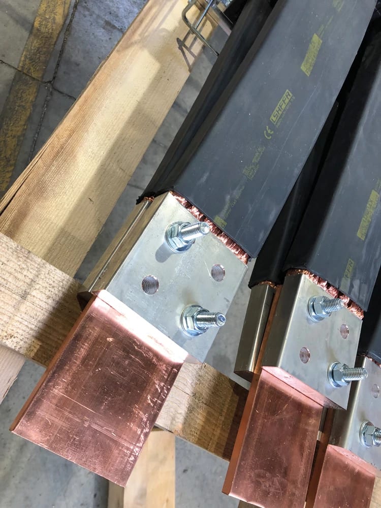 Il conduttore nVent ERIFLEX FleXbus è pronto all'uso da un lato per il collegamento diretto alla sbarra o al terminale dell'interruttore. 800 mm², 20,000 mm x 50 mm x 50 mm x 25 mm x 74.4kg