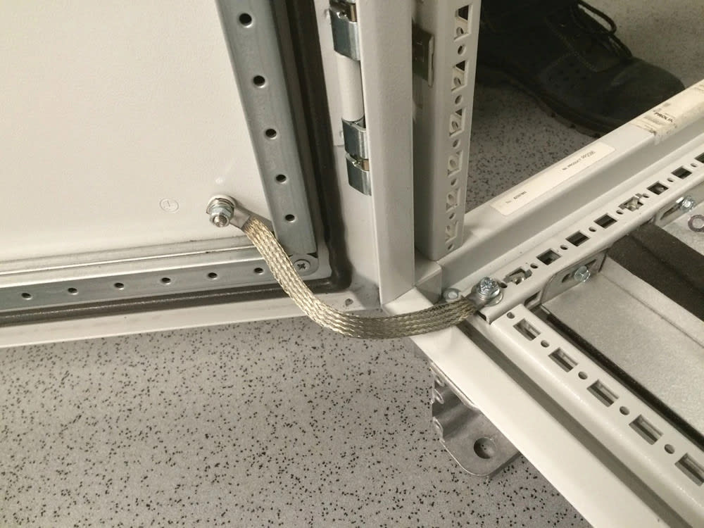 Treccia di messa a terra in rame stagnato piatto. MBJ50-300-16, 250 A Ampacity, 98,68 kcmil (50 mm2), 11,811"(300 mm), foro da 16,5 mm (0,65").