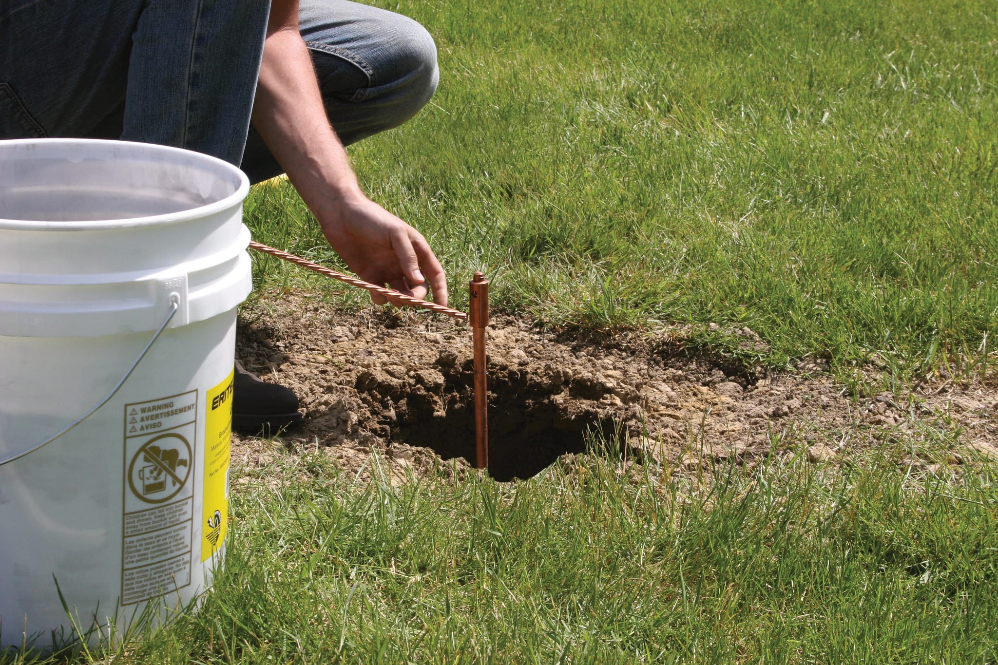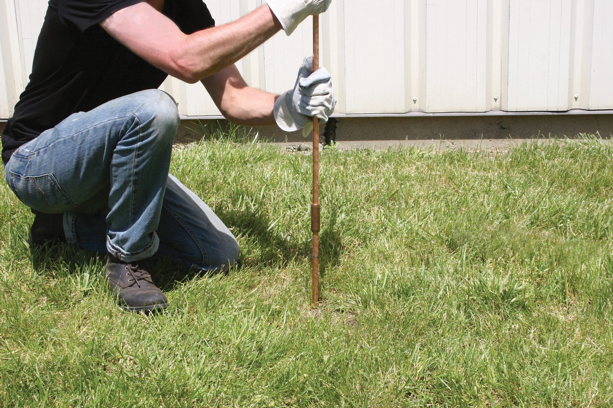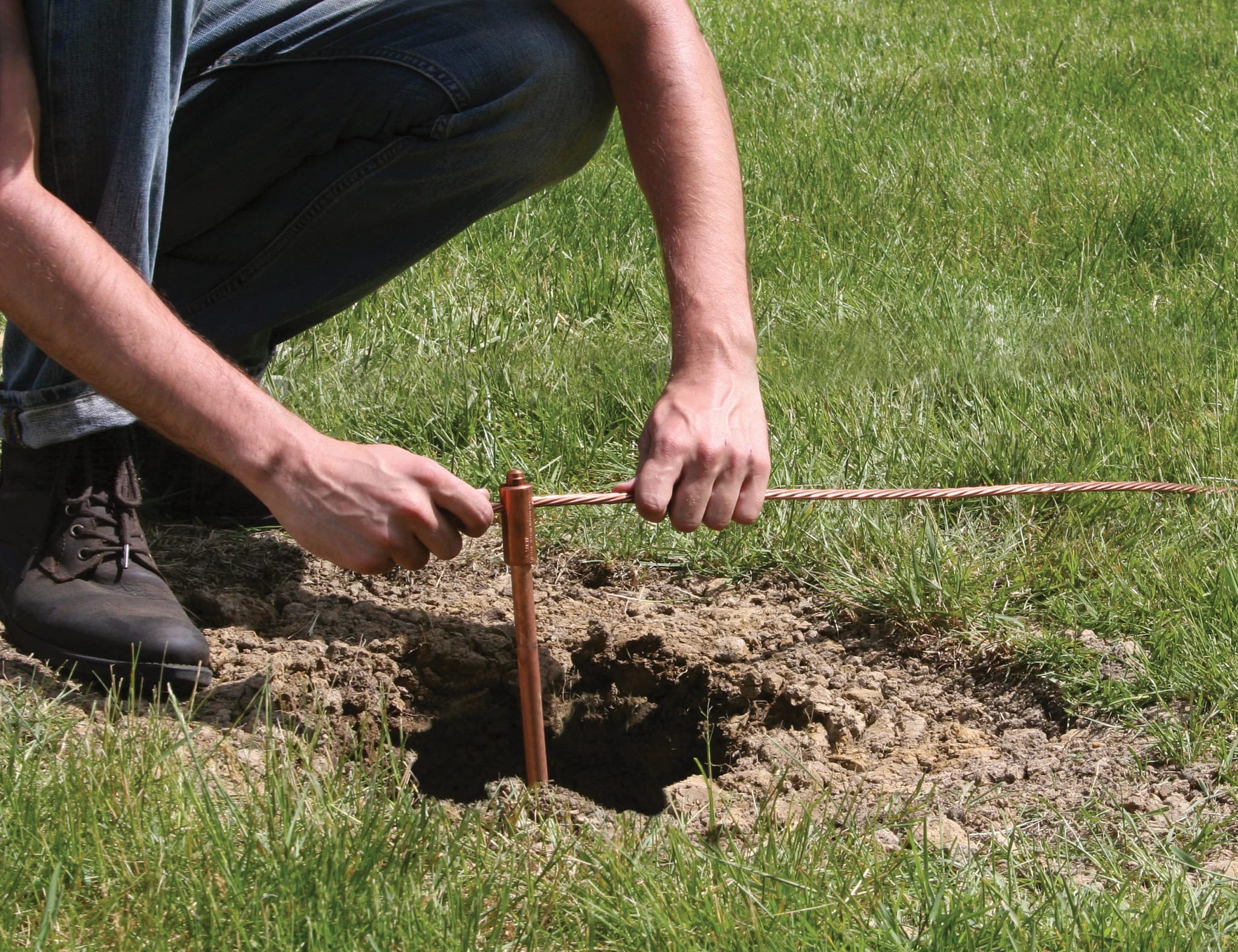 I picchetti in acc. ram. nVent ERICO combin. la resist. dell'acc. per facilitare l'install. con il rame legato molec. per una resist. alla corr. di lunga durata. Asta di terra appuntita, 3/4"x 5' con spess. di placc. 10 mil.