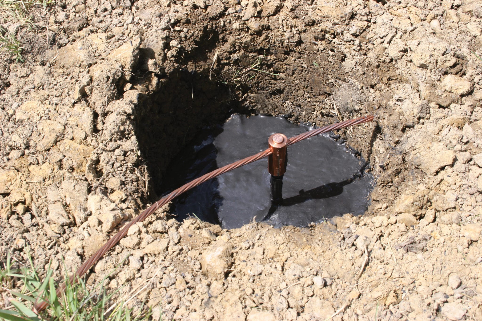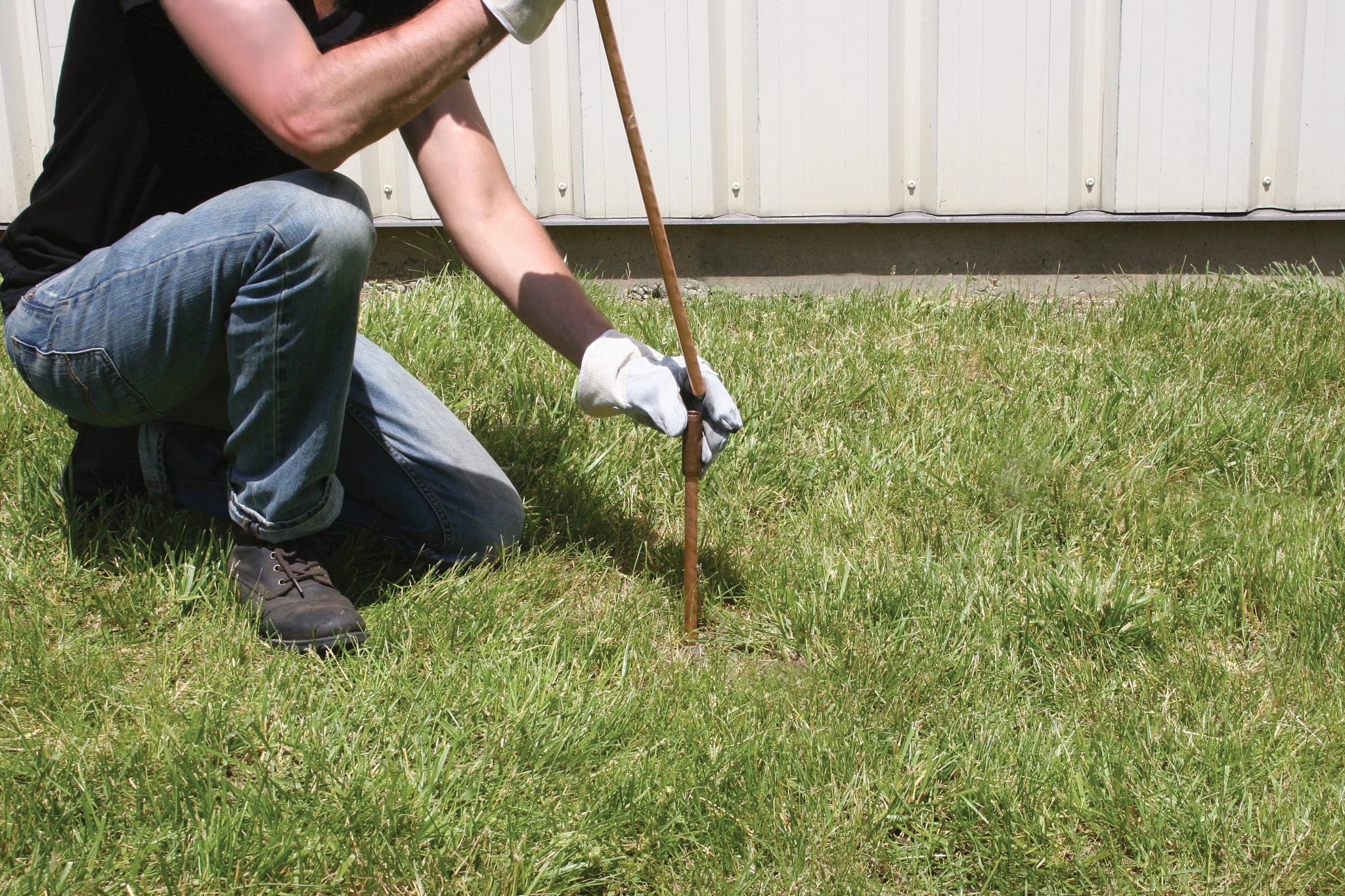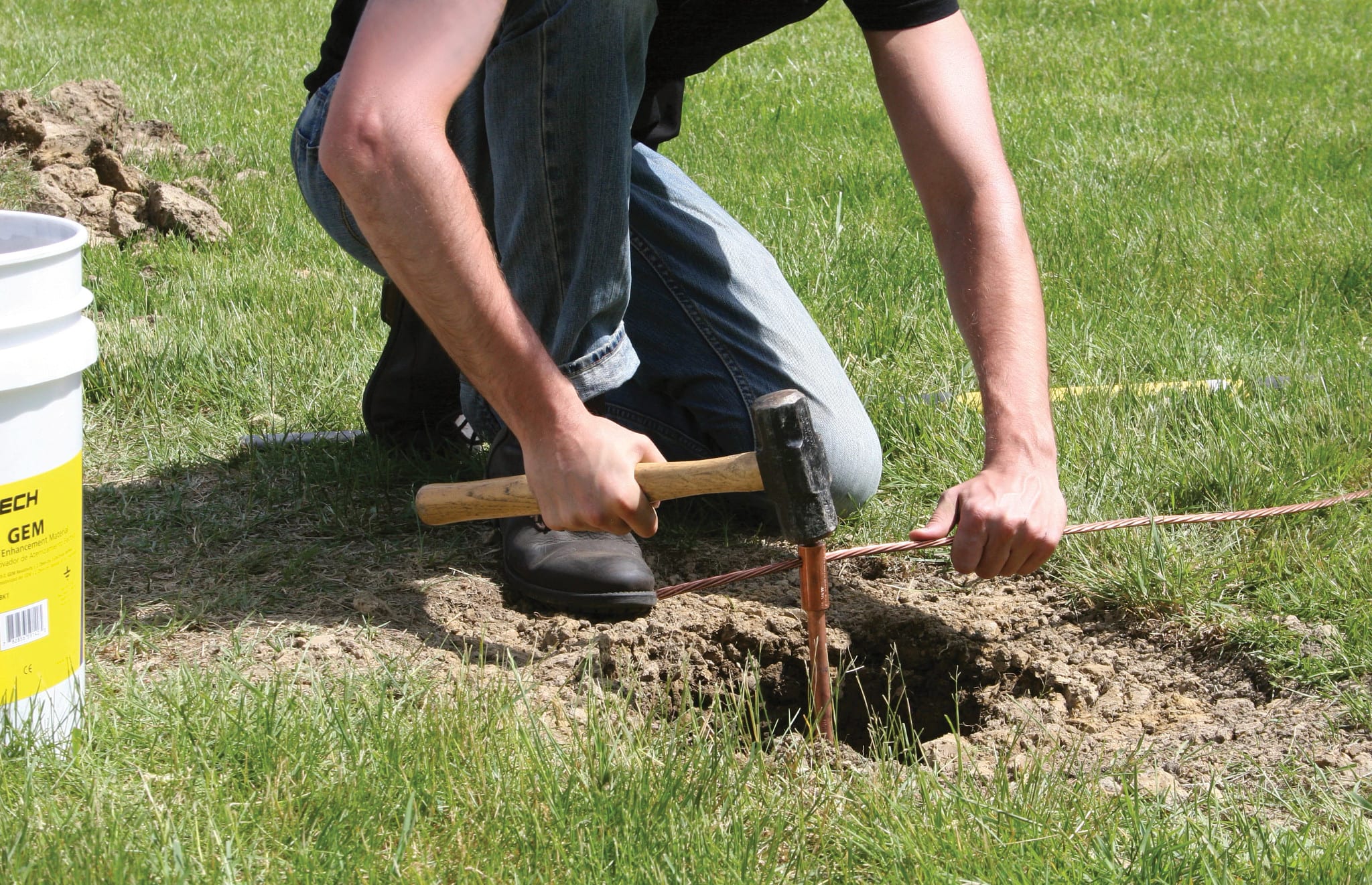 I picchetti in acc. ram. nVent ERICO combin. la resist. dell'acc. per facilitare l'install. con il rame legato molec. per una resist. alla corr. di lunga durata. Asta di terra appuntita, 3/4"x 5' con spess. di placc. 10 mil.
