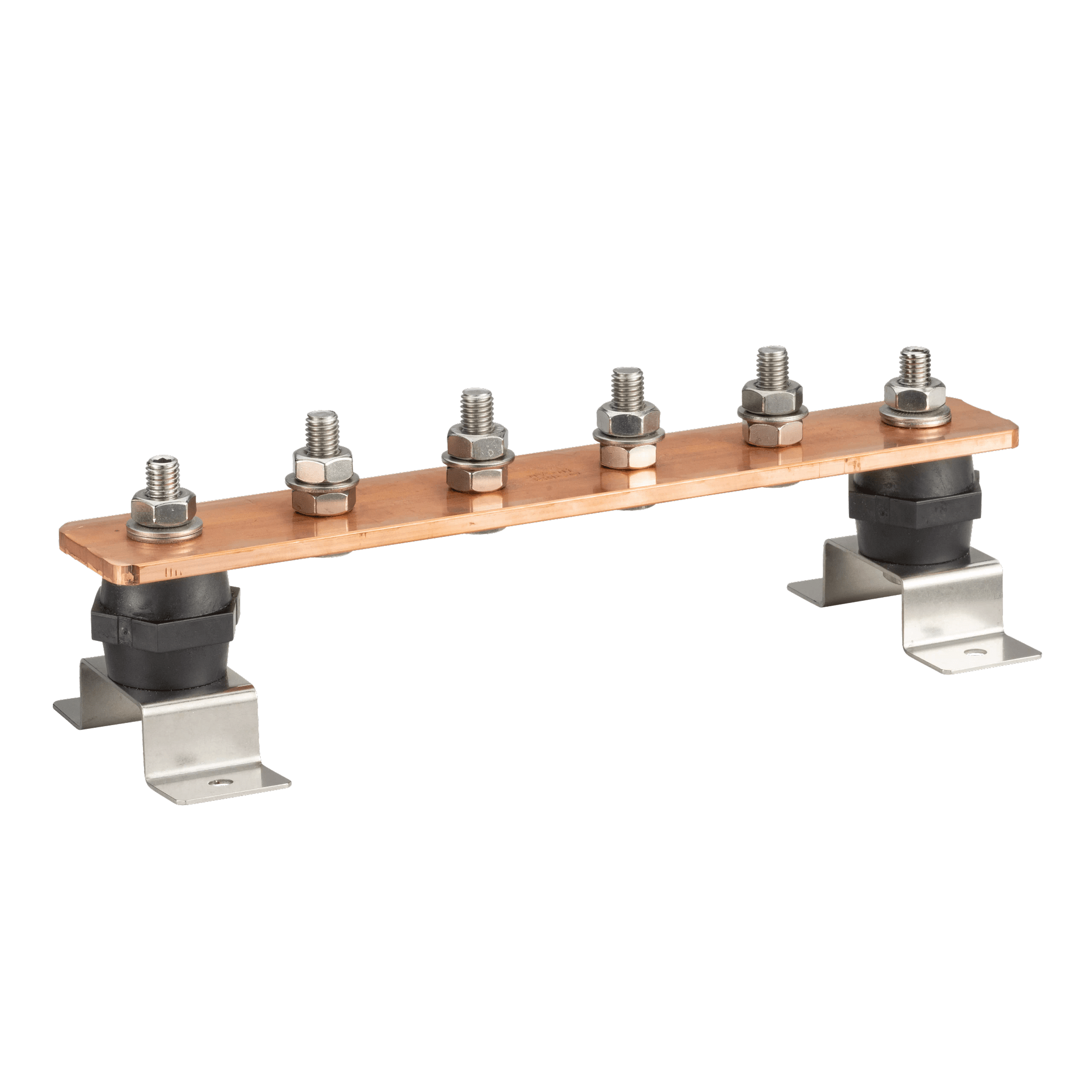 Punto di messa a terra comune per più pannelli e dispositivi elettrici. Include isolanti in poliammide privi di alogeni, componenti in acciaio inossidabile (EN 1,4401) e staffe di montaggio.