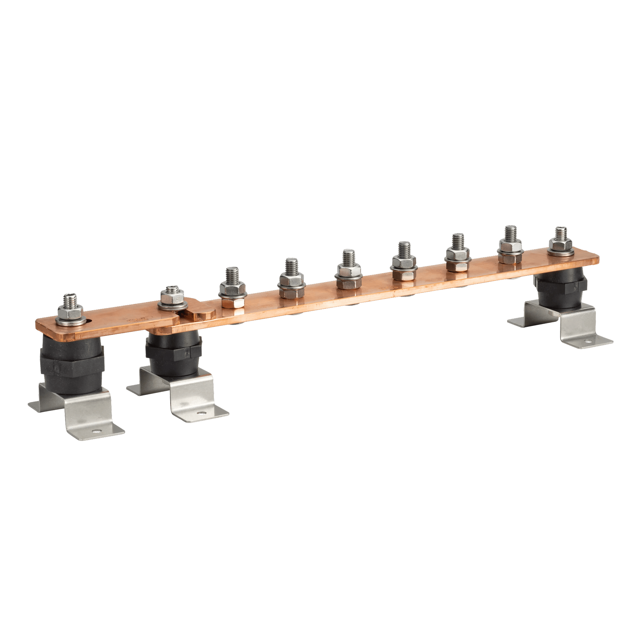 Punto di massa comune per più pannelli e disp.elettrici. Include isolanti in poliammide privi di alog., comp.in acc. inoss. (EN 1,4401) e staffe di montaggio. La possibilità di disconn. consente la verifica del sistema di terminaz. a terra.