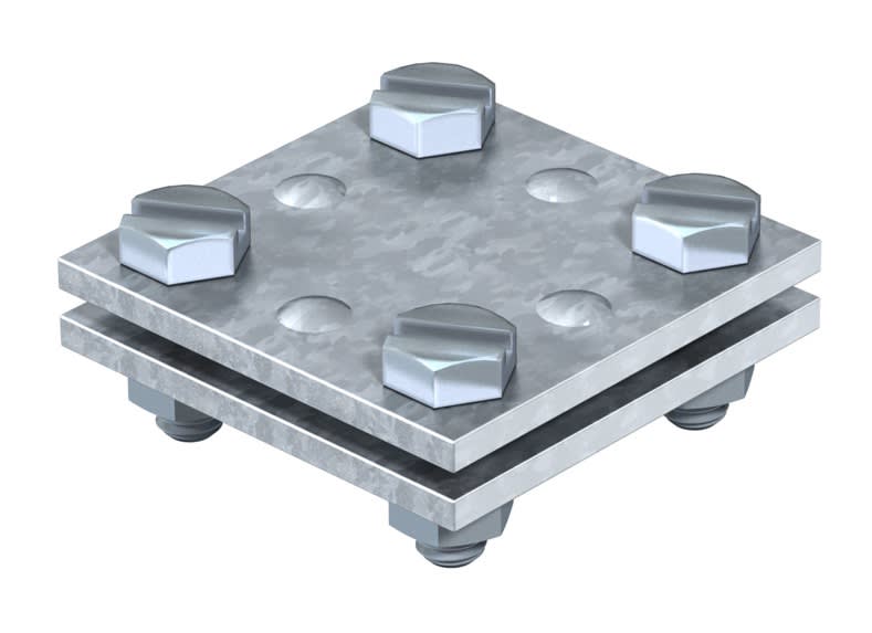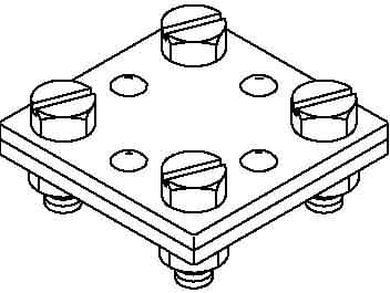 Con 4 viti a testa esagonale M8 x 25 e 4 dadi esagonali M8.