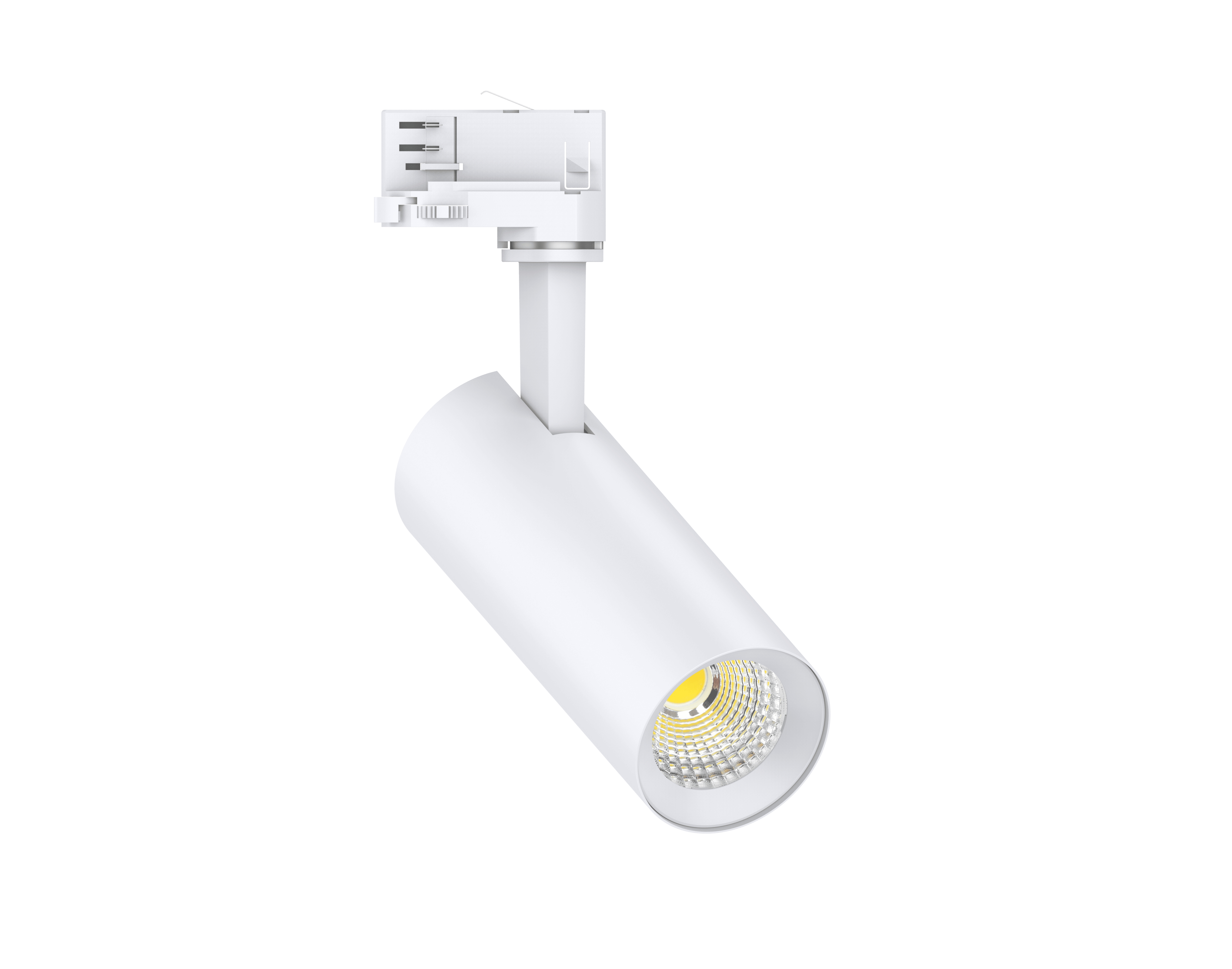 Faretto compatto con elevata efficienza luminosa e con distribuzione uniforme della luce. Angolo del fascio luminoso variabile con i riflettori intercambiabili. Compatibile con binari Eutrac Global Nordic e standard Europei.
