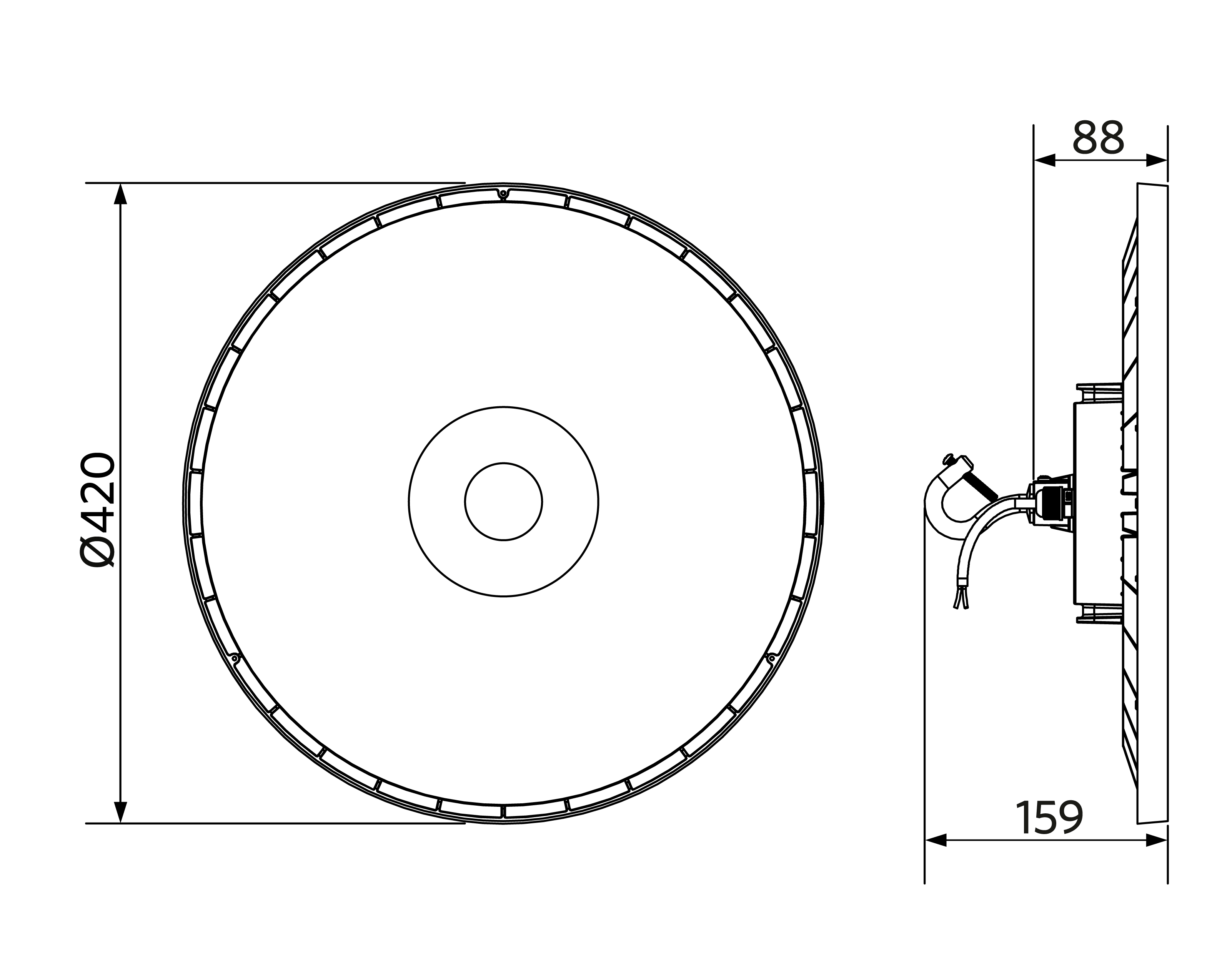 Soluzione ideale per soffitti elevati. Design slim ed elegante. Riflettori, staffa e connettore IP68 disponibili come accessorio.