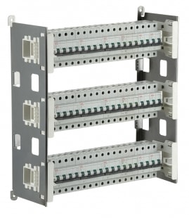 Telaio funzionale in acciaio a montaggio rapido per l'installazione di pannelli frontali e guide EN 50022, completo di viti per il fissaggio.