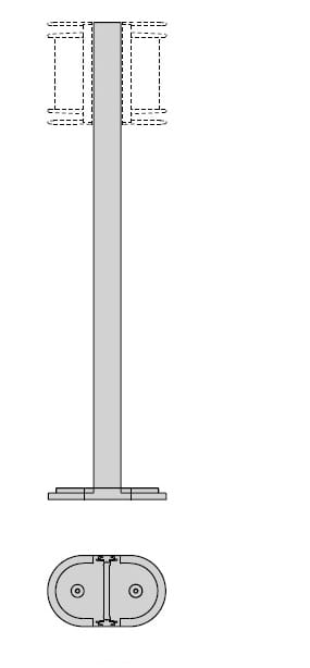 Palo 27 H1200 costituito da: Palo in alluminio estruso verniciato predisposto per alloggiare uno o due apparecchi. Base di fissaggio a terra in alluminio pressofuso verniciato. Scatola di derivazione in alluminio pressofuso con morsetto a 4 poli 4 mm2 predisposta per collegamento in cascata. Colore: Antracite.