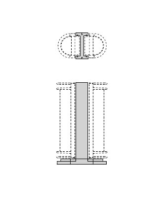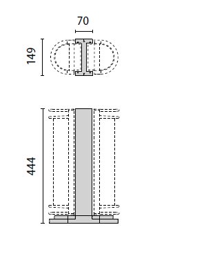 Palo 45 H410 costituito da: Palo in alluminio estruso verniciato predisposto per alloggiare uno o due apparecchi. Base di fissaggio a terra in alluminio pressofuso verniciato. Scatola di derivazione in alluminio pressofuso con morsetto a 4 poli 4 mm2 predisposta per collegamento in cascata. Colore: Grigio.