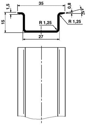 Tragschiene ungelocht, Standardprofil, Breite: 35 mm, Höhe: 15 mm, ähnlich EN 60715, Material: Stahl, verzinkt, dickschichtpassiviert, Länge: 2000 mm, Farbe: silberfarben