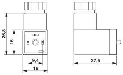 Ventilstecker, 3-polig, Ventilstecker CI (9,4 mm), mit 1 LED, beschaltet mit Varistor, Schraubanschluss, Kabelverschraubung M12, Kabelaußendurchmesser 4 mm ... 6 mm
