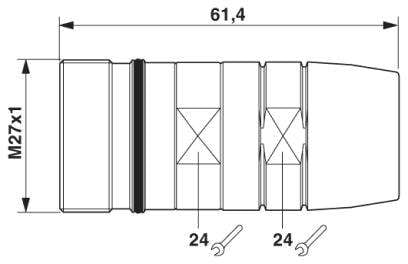 Kupplungssteckverbinder, gerade, Schraubverriegelung, M27, Polzahl: 26, Kontaktart: Stift, Lötanschluss, geschirmt: ja, Kabeldurchmesserbereich: 2 mm ... 14,5 mm