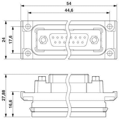 D-SUB-Anbaurahmen, Shell-Größe 1, mit 9 Signalkontakten, Stift, Gender-Changer, geschirmt, Schutzart IP67