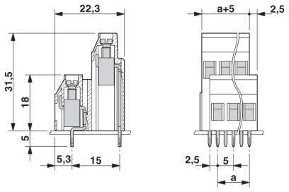 Winkel Leiterplatte/Leiteranschluss - 0°/180° (horizontal)