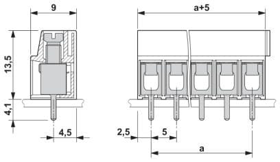 Winkel Leiterplatte/Leiteranschluss - 0°/180° (horizontal)