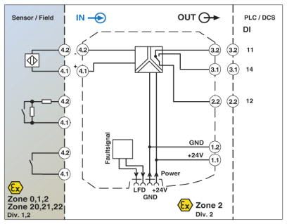 Eigensicher nach EN 60947-5-6 NAMUR: