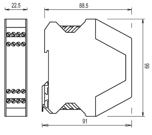 Modulo di espansione con contatti d’uscita, Caratteristiche principali • Per applicazioni di sicurezza fino a SIL 3/PL e • Modulo per circuiti d'uscita a stato solido (barriere ottiche tipo 2 e 4) • 2 ingressi OSSD • Custodia di dimensioni ridotte da 22,5 mm • Contatti d’uscita: 3 contatti NO di sicurezza, 1 contatto NC di retroazione/EDM • Tensione di alimentazione: 24 Vdc