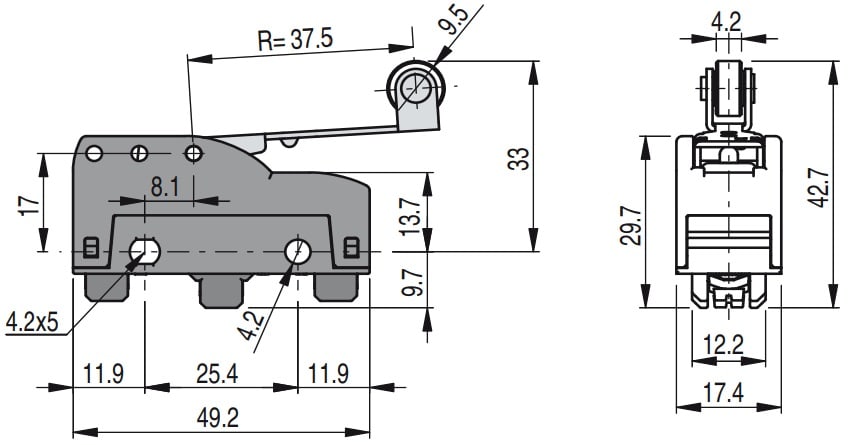 PIZZATO ELETTRICA - PZZMK V11R42 MICROINTERRUTTORE A LEVA CON ROTELLA