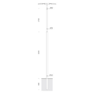 Palo cilindrico Ø60 h.8000mm, Ø121- 76mm attacco, FT interrato 0,8m. Finitura grigio.